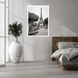 Affiche - Poster - Photo en noir et blanc du carrousel et de la tour en arrière-plan - 50x70cm - Aussi amusant, ce n'est qu'à Paris - Décoration murale moderne pour le salon et la chambre ARTTOR