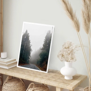 Affiche - Poster - Une route sinueuse parmi les arbres enveloppée de brouillard - 50x70cm - Conte de la forêt magique - Décoration murale moderne pour le salon et la chambre ARTTOR