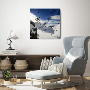 Horloge murale - Pendule murale - Un snowboardeur saute d'une falaise avec des montagnes enneigées en arrière-plan. - 30x30cm - Liberté sans limite - Décoration murale moderne pour le salon et la chambre ARTTOR
