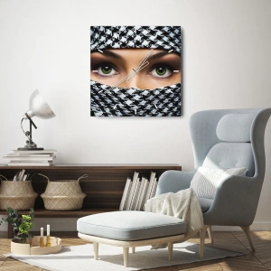 Horloge murale - Pendule murale - Un portrait d'une beauté voilée aux yeux verts - 30x30 cm
