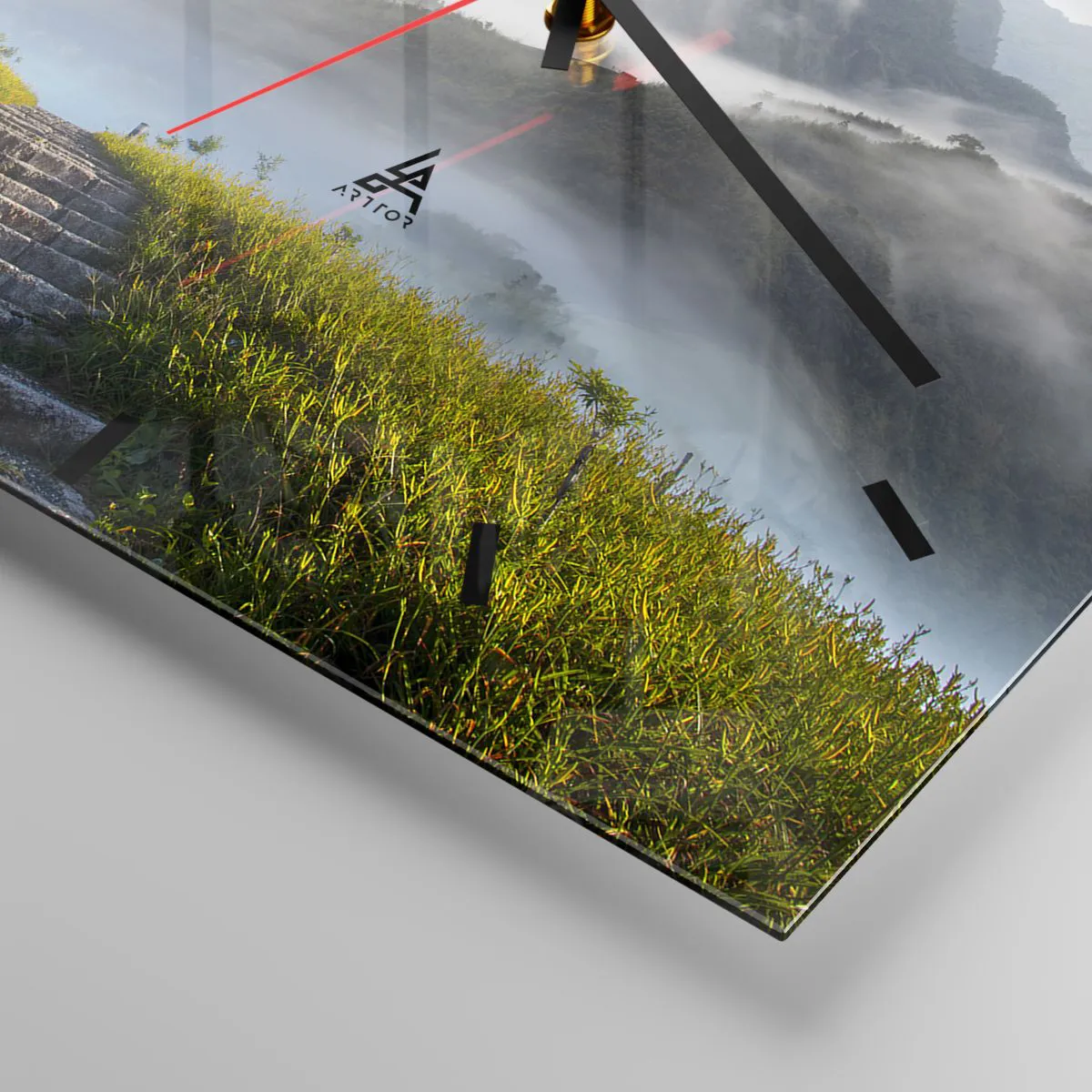 L'horloge est fabriquée à l'aide de technologies d'impression modernes, qui garantissent la préservation des couleurs naturelles et une saturation élevée des couleurs. La production d'horloges sur verre se déroule en plusieurs étapes. Une impression de haute qualité et deux couches de protection thermique liées au verre. Pour cela, nous utilisons la technologie innovante des fours de laminage du verre dans un environnement sous vide.