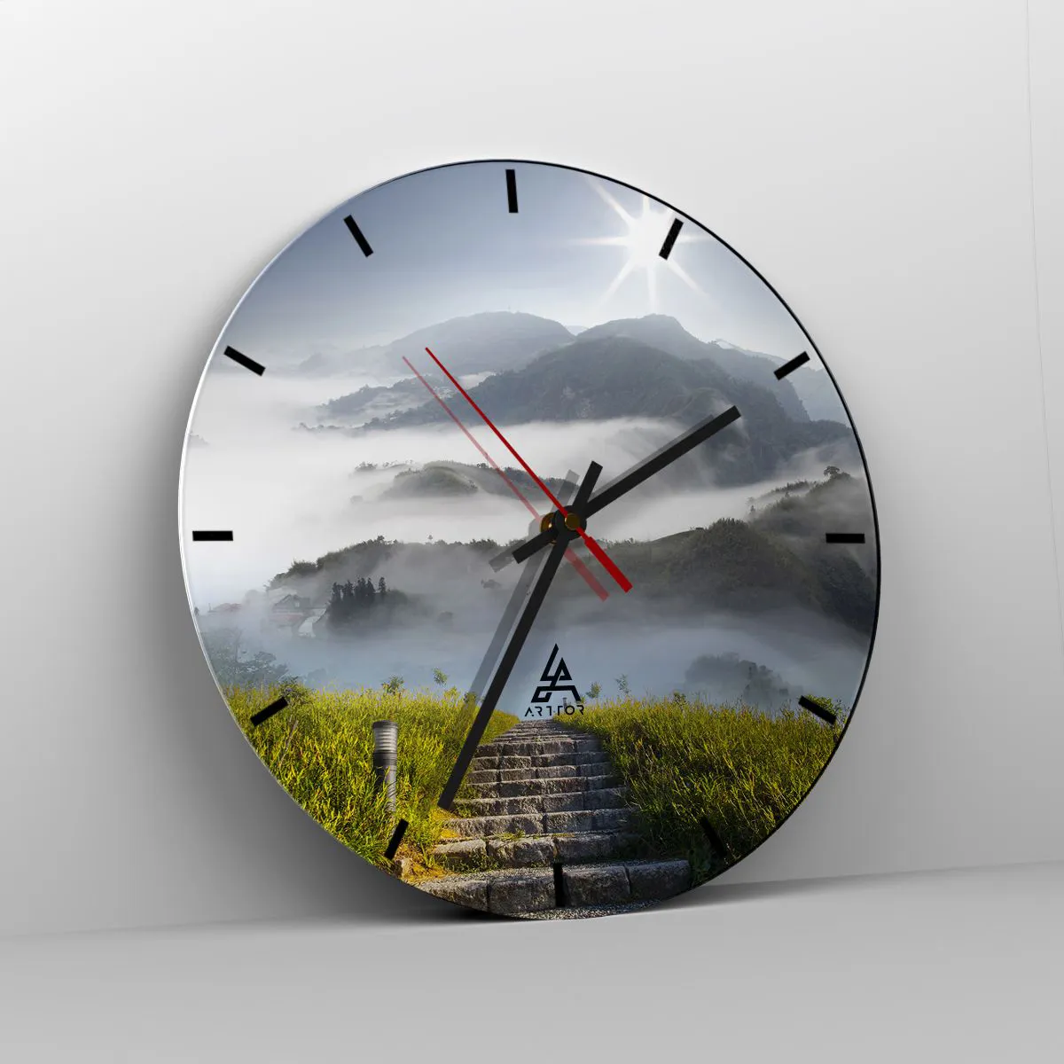 L'horloge est fabriquée en verre durable de 4 mm d'épaisseur. Le verre conserve les couleurs naturelles de l'impression