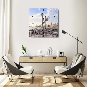 Horloge murale - Pendule murale - Venise, vue de la place avec des colonnes et des tables de café - 30x30cm - Nous vous invitons, tout est prêt - Décoration murale moderne pour le salon et la chambre ARTTOR
