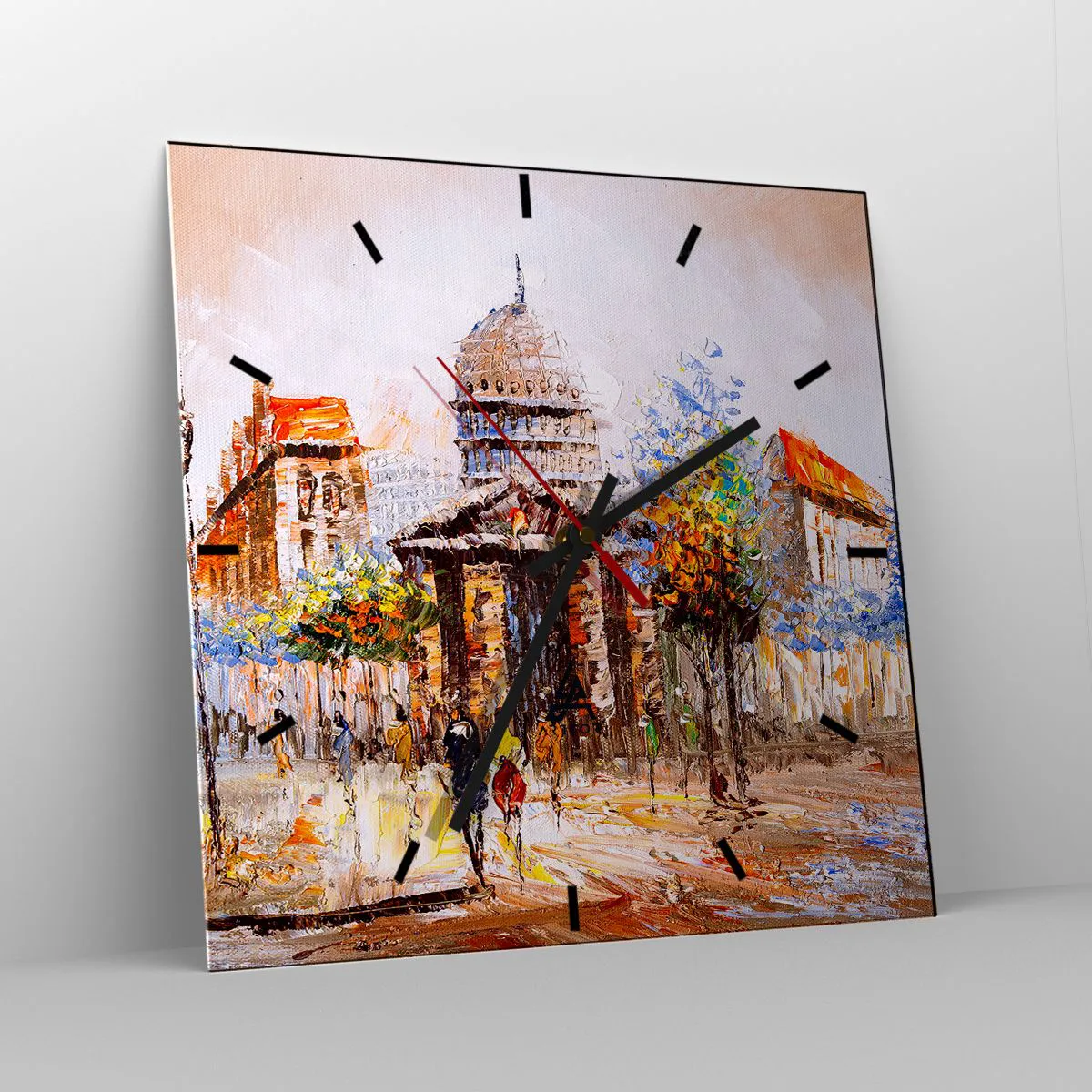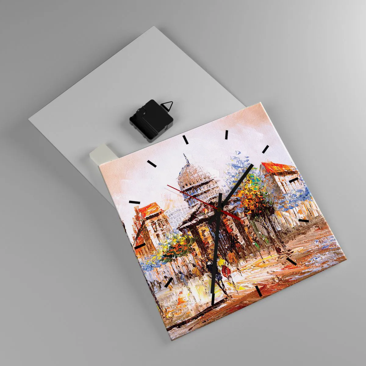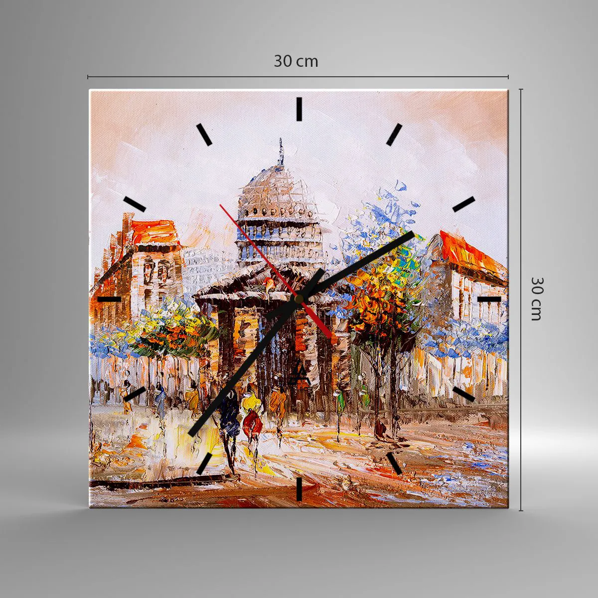Horloge murale - Pendule murale - Scène de ville impressionniste avec un bâtiment historique - 30x30cm - Promenade à Paris - Décoration murale moderne pour le salon et la chambre ARTTOR