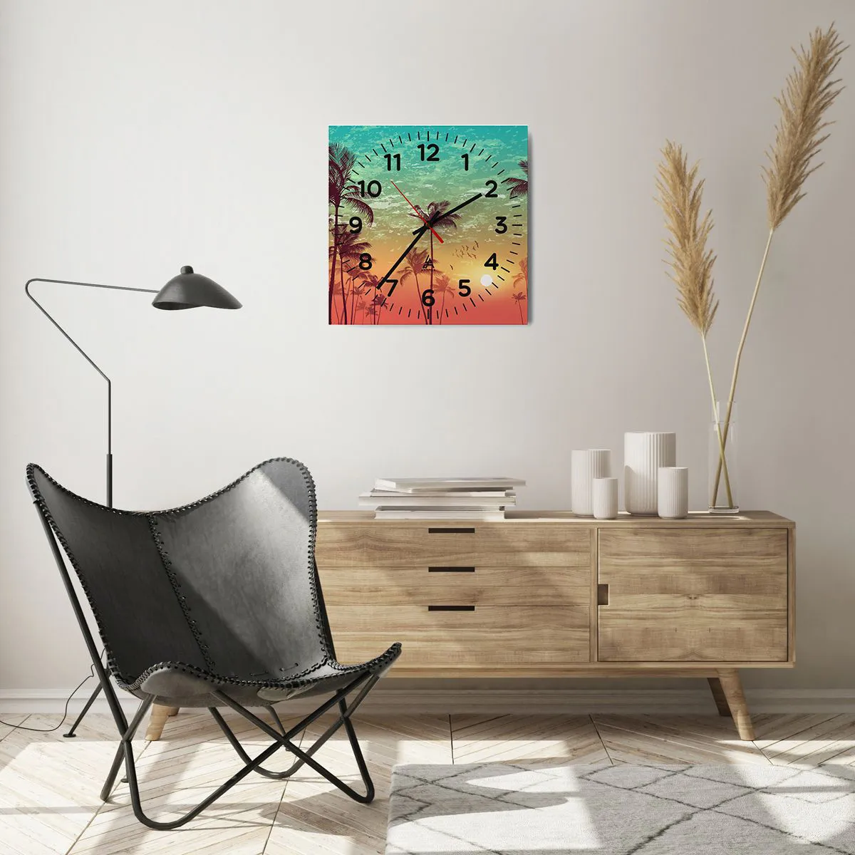 Horloge murale - Pendule murale - Ambiance tropicale - 40x40 cm