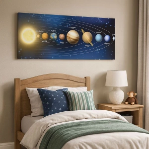 Impression sur toile - Image sur toile - Schéma du système solaire avec les planètes et le soleil - 140x50cm - L'une des dix - Décoration murale moderne pour le salon et la chambre ARTTOR