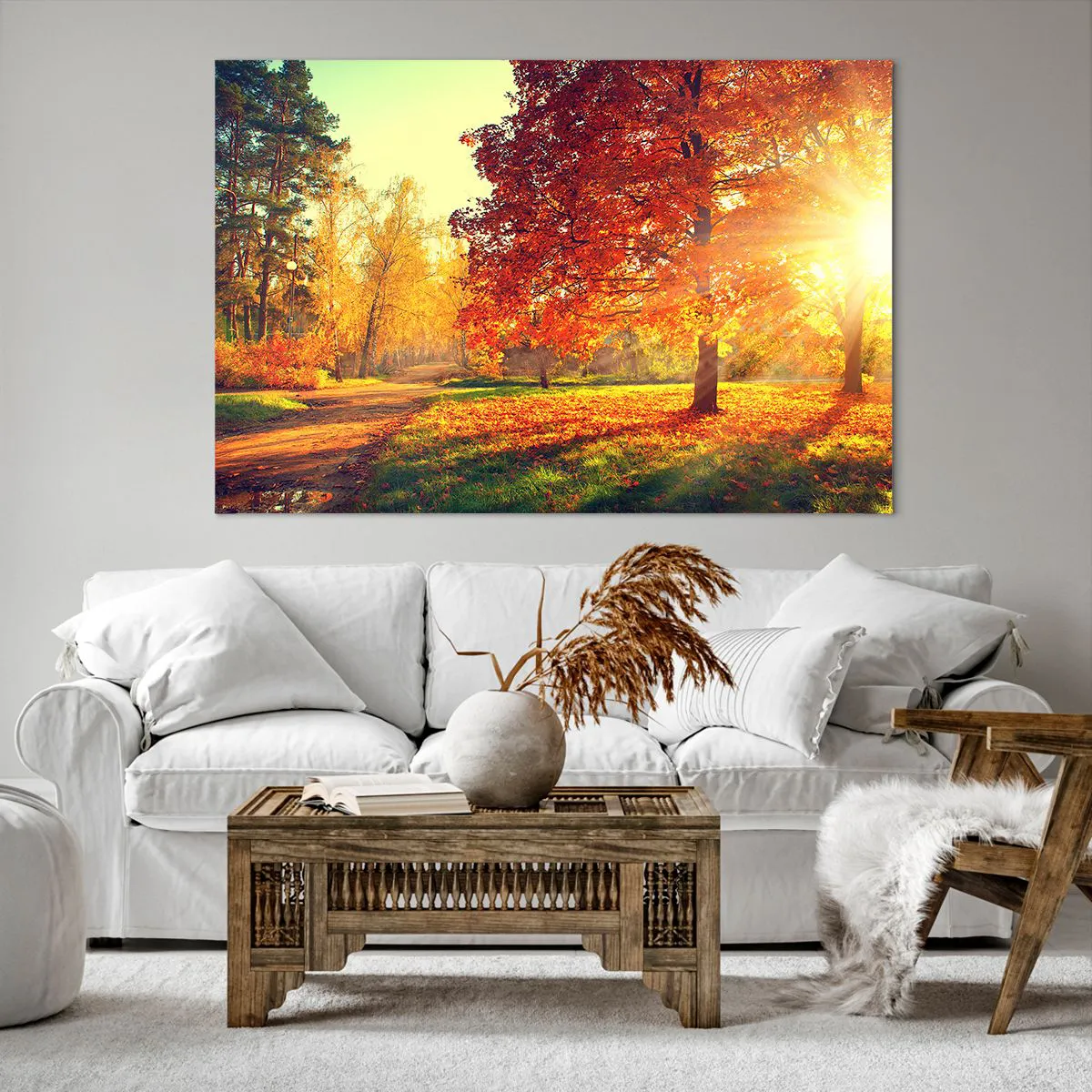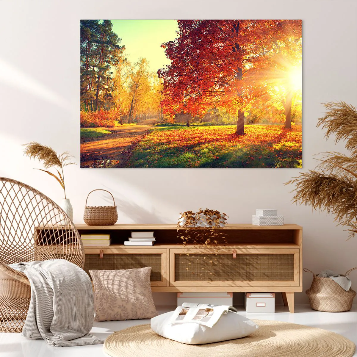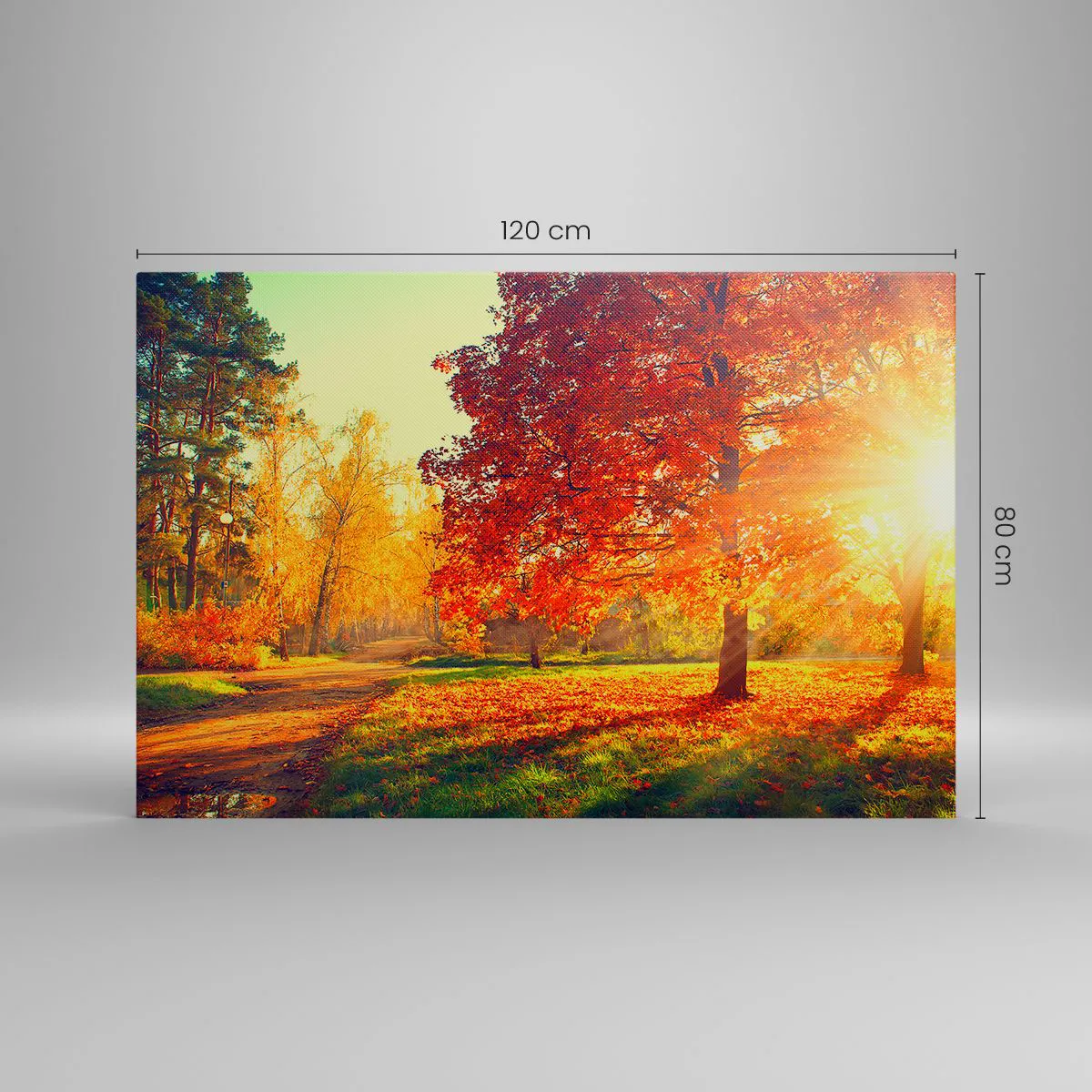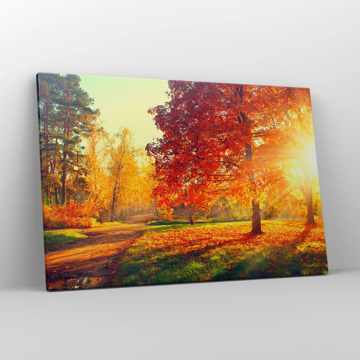 Impression sur toile - Image sur toile - Parc d'automne illuminé par la lumière du soleil - 120x80cm - Le roux est beau - Décoration murale moderne pour le salon et la chambre ARTTOR