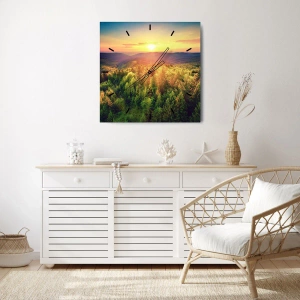 Horloge murale - Pendule murale - Paysage forestier avec coucher de soleil sur les collines - 30x30cm - Monts et sommets - Décoration murale moderne pour le salon et la chambre ARTTOR