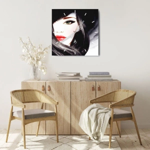Le cadran représente le portrait d'une femme au regard intense couleur saphir, mis en valeur par de délicates nuances de rouge et de noir. Une finition soignée et une harmonie de couleurs confèrent à l'horloge un caractère unique, ce qui en fait un ajout parfait aux intérieurs modernes et classiques.