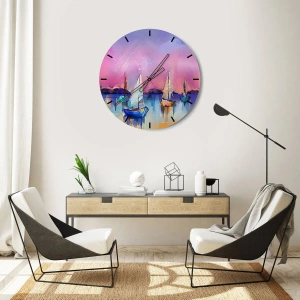 Horloge murale - Direction : Eaux larges - Marina abstraite avec voiliers aux couleurs pastel
