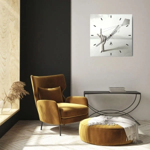 L'horloge est produite avec un verre de sécurité de 4 mm d'épaisseur. La technologie de fabrication de l'horloge est conforme à la classe de sécurité 2B2 selon la norme PN-EN 12600 : 2004, qui garantit la résistance aux chocs. L'horloge en verre est prête à être accrochée - elle a une attache en métal attaché à l'arrière et une entretoise en mousse régulant la distance uniformément de l'horloge par rapport au mur. L'horloge a un mécanisme flottant silencieux alimenté par une pile 1.5V - pile AA (pile non incluse).