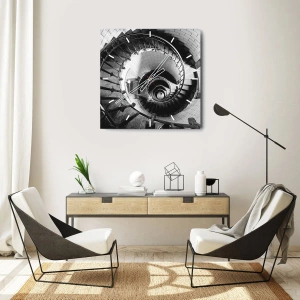 Horloge murale - Pendule murale - Photographie en noir et blanc d'un escalier en colimaçon avec une perspective de haut en bas - 30x30cm - De plus en plus haut - Décoration murale moderne pour le salon et la chambre ARTTOR