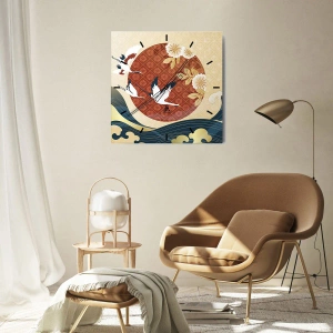 Horloge murale - Pendule murale - Composition japonaise avec des grues et des vagues - 30x30cm - Conte japonnais - Décoration murale moderne pour le salon et la chambre ARTTOR