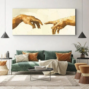Impression sur toile - Image sur toile - Mains géométriques tendues l'une vers l'autre sur un fond clair - 120x50cm - Géométrie divine - Décoration murale moderne pour le salon et la chambre ARTTOR