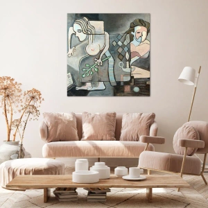 Impression sur toile - Image sur toile - Figures abstraites dans une composition symbolique avec une signification profonde - 100x70cm - Mosaïque d'esprit et de matière - Décoration murale moderne pour le salon et la chambre ARTTOR
