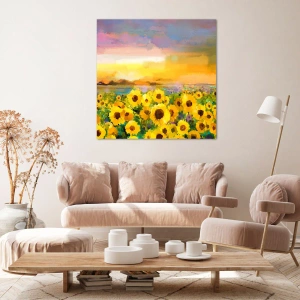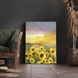 Impression sur toile - Image sur toile - Un champ de tournesols à la lumière du soleil couchant - 140x50cm - Le soleil lui-même est descendu sur terre - Décoration murale moderne pour le salon et la chambre ARTTOR