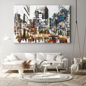 Impression sur toile - Image sur toile - Un paysage urbain moderne dans un style artistique - 120x50cm - Une ville chatoyante - Décoration murale moderne pour le salon et la chambre ARTTOR