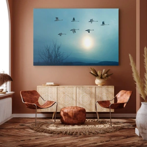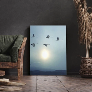 Impression sur toile - Image sur toile - Cygnes volants le matin - 70x50cm - Dis au revoir à l'été pour un an - Décoration murale moderne pour le salon et la chambre ARTTOR