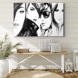 - Ce tableau présente des portraits de femmes élégants aux tons monochromes, soulignant l'élégance et l'expressivité. Parfait pour les intérieurs modernes.