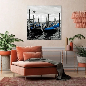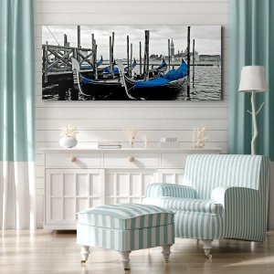 Impression sur toile - Image sur toile - Gondoles à Venise avec des couvertures bleues - 50x70cm - Venise pensive - Décoration murale moderne pour le salon et la chambre ARTTOR