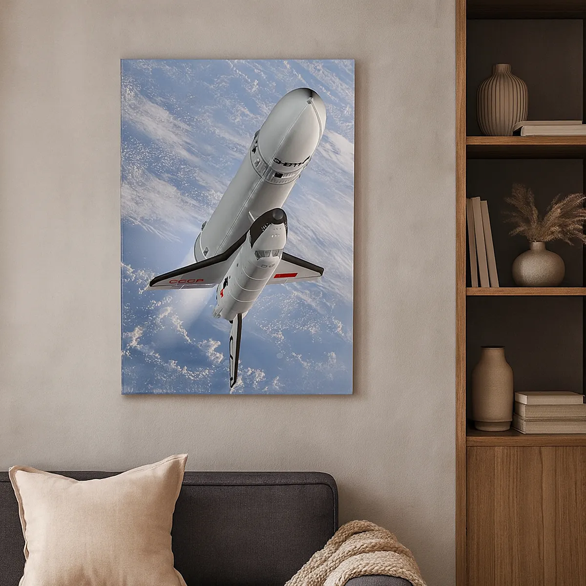 Impression sur toile - Image sur toile - Une fusée spatiale s'élevant devant la Terre en arrière-plan - 80x120cm - Ascension cosmique - Décoration murale moderne pour le salon et la chambre ARTTOR