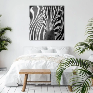 Impression sur toile - Image sur toile - Gros plan noir et blanc d'un zèbre avec ses rayures distinctives. - 50x70cm - Le monde est noir et blanc - Décoration murale moderne pour le salon et la chambre ARTTOR
