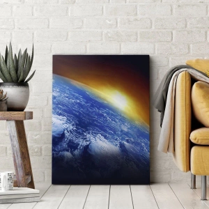 Impression sur toile - Image sur toile - Vue de la Terre depuis l'espace au coucher du soleil - 50x70cm - Lever de soleil sur la planète bleue - Décoration murale moderne pour le salon et la chambre ARTTOR