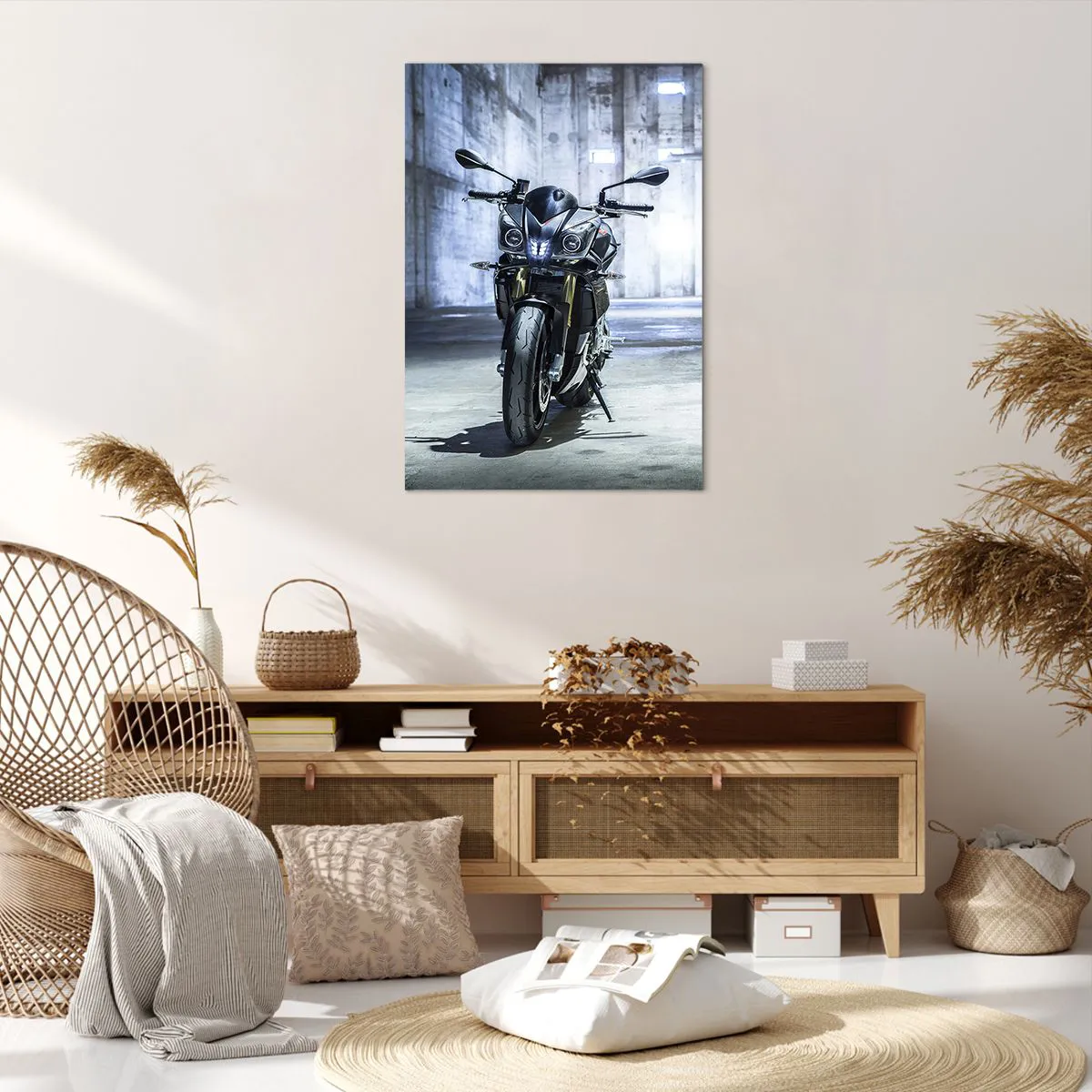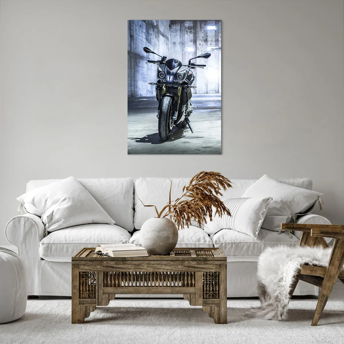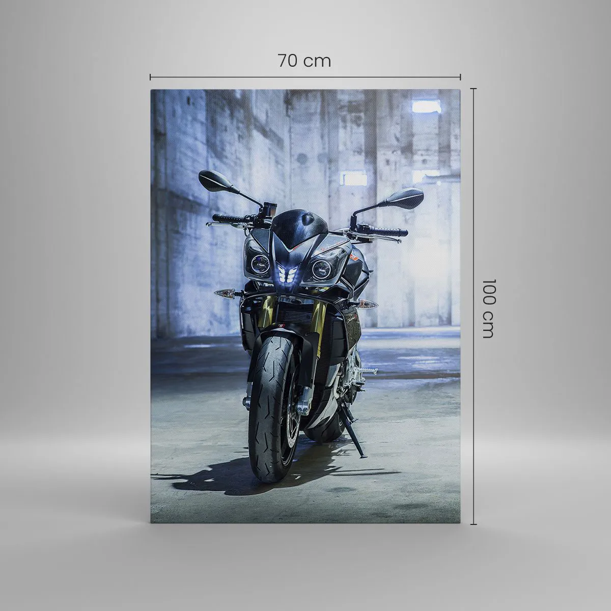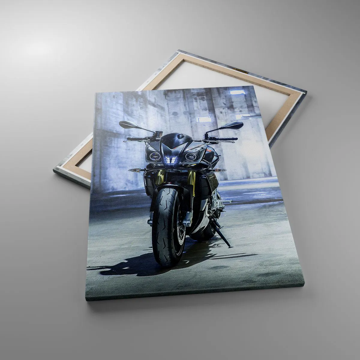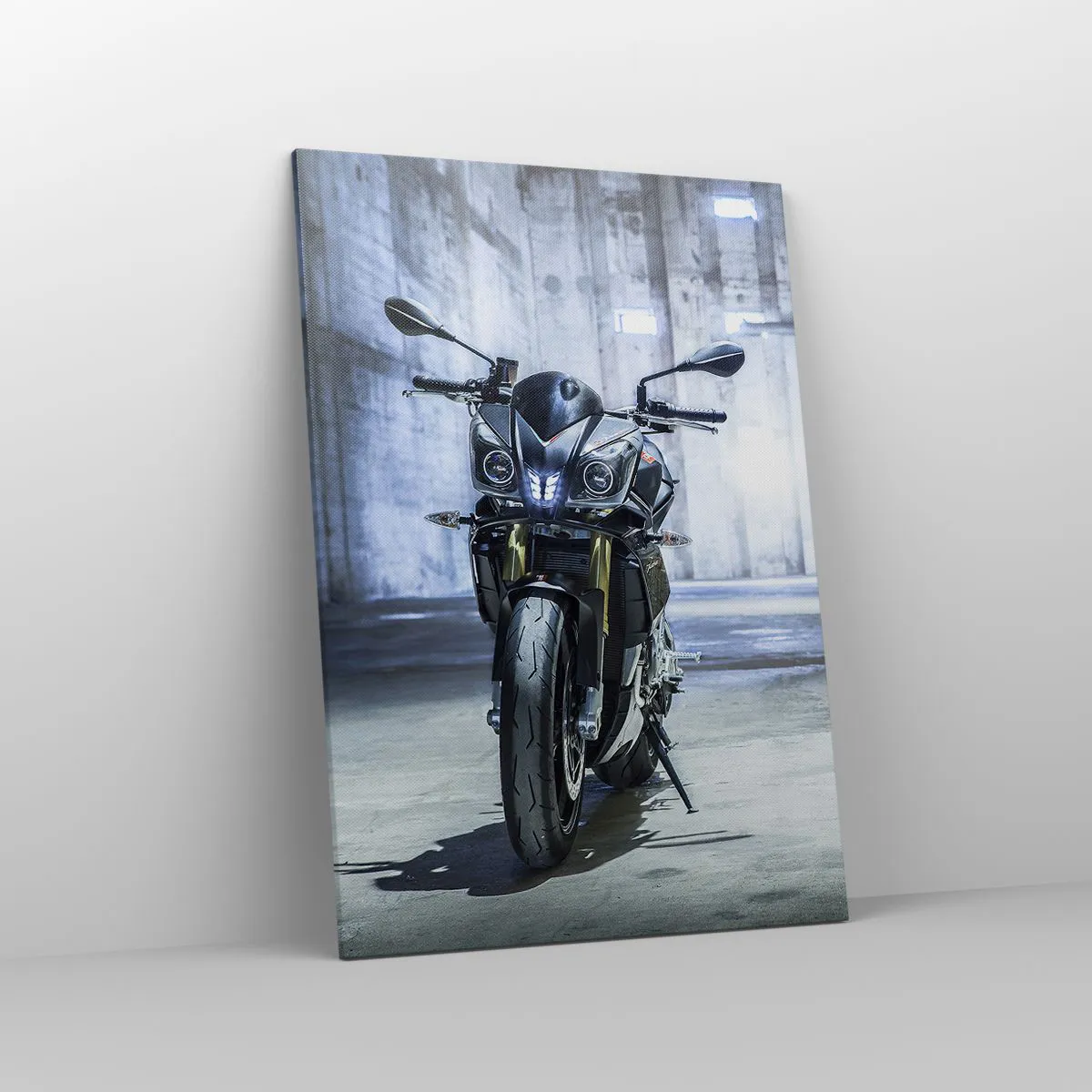 Impression sur toile - Image sur toile - Une moto moderne dans un intérieur industriel - 70x100cm - Avant que le moteur ne rugisse - Décoration murale moderne pour le salon et la chambre ARTTOR