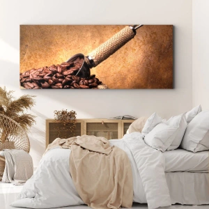 Impression sur toile - Image sur toile - Grains de café dans un sac en jute avec une cuillère en métal - 70x100cm - A la source de la saveur - Décoration murale moderne pour le salon et la chambre ARTTOR