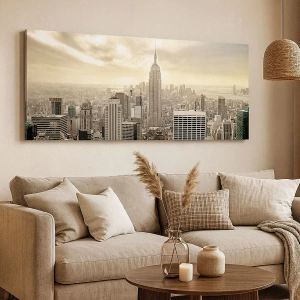 Impression sur toile - Image sur toile - Panorama de la ville avec vue sur l'Empire State Building - 70x100cm - New York tissé de gris - Décoration murale moderne pour le salon et la chambre ARTTOR