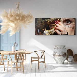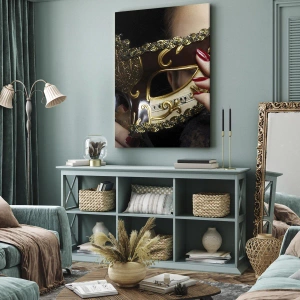 Impression sur toile - Image sur toile - Une femme portant un masque vénitien décoré d'or et de dentelle. - 70x100cm - Mon monde est baroque - Décoration murale moderne pour le salon et la chambre ARTTOR