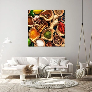 Impression sur toile - Image sur toile - Bols d'épices de différentes couleurs - 80x120cm - Prends ce que tu veux - Décoration murale moderne pour le salon et la chambre ARTTOR