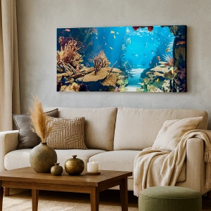 Impression sur toile - Image sur toile - Monde sous-marin avec récif corallien et poissons - 80x120cm - Tu ne l'as même pas rêvé - Décoration murale moderne pour le salon et la chambre ARTTOR