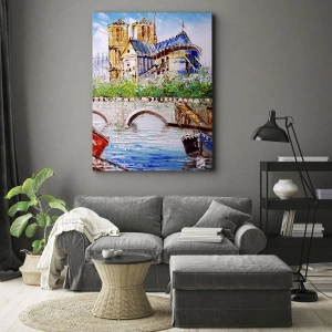 Impression sur toile - Image sur toile - Paysage avec un pont et une cathédrale de style classique - 50x70cm - Leur temps ne passe jamais - Décoration murale moderne pour le salon et la chambre ARTTOR