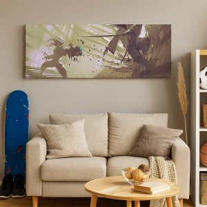 Impression sur toile - Image sur toile - Combat dynamique entre deux personnages dans un style futuriste - 50x70cm - Et tu peux être un samouraï - Décoration murale moderne pour le salon et la chambre ARTTOR