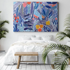 Impression sur toile - Image sur toile - Un motif végétal coloré dans un style graphique moderne - 50x70cm - Jardin hawaïen - Décoration murale moderne pour le salon et la chambre ARTTOR