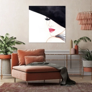 Impression sur toile - Image sur toile - Une illustration subtile d'une femme portant un chapeau noir et des lèvres rouges - 50x70cm - Élégance et sensualité - Décoration murale moderne pour le salon et la chambre ARTTOR