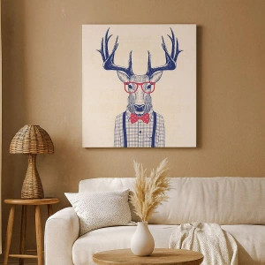 Impression sur toile - Image sur toile - Graphique stylisé d'un cerf portant des lunettes et un nœud papillon - 50x70cm - Une extravagance amusante - Décoration murale moderne pour le salon et la chambre ARTTOR