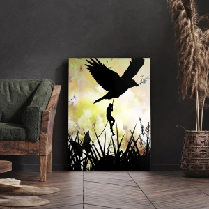 Impression sur toile - Image sur toile - Silhouette de la nature avec un oiseau et un pissenlit - 80x120cm - Dans une ambiance de conte de fées - Décoration murale moderne pour le salon et la chambre ARTTOR