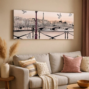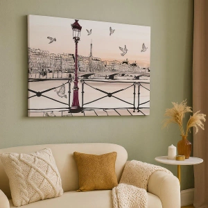 Impression sur toile - Image sur toile - Vue parisienne avec une lanterne et un pont - 50x70cm - Sur les toits de Paris - Décoration murale moderne pour le salon et la chambre ARTTOR