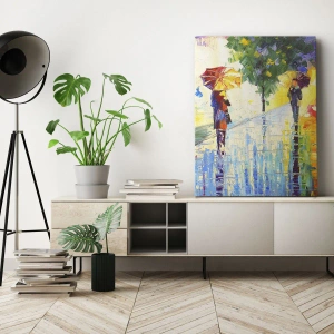 Impression sur toile - Image sur toile - Une promenade avec un parapluie dans un paysage pluvieux coloré - 50x70cm - Et tout est clair - Décoration murale moderne pour le salon et la chambre ARTTOR