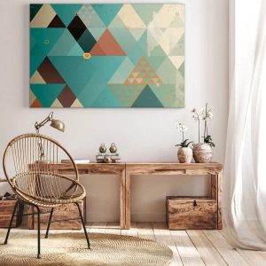 Impression sur toile - Image sur toile - Motifs géométriques dans les tons turquoise et marron - 50x70cm - Unité de la multiplicité, multiplicité de l'unité - Décoration murale moderne pour le salon et la chambre ARTTOR