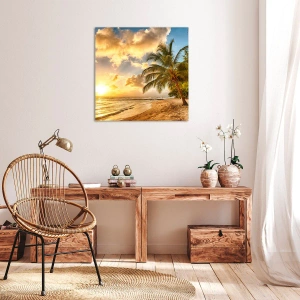 Impression sur toile - Image sur toile - Plage avec palmiers et coucher de soleil sur l'océan - 50x70cm - Été éternel, toujours des vacances - Décoration murale moderne pour le salon et la chambre ARTTOR