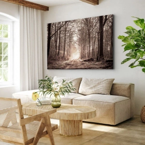 Impression sur toile - Image sur toile - Un chemin forestier parmi des arbres aux tons sépia - 50x70cm - Cathédrale de la forêt - Décoration murale moderne pour le salon et la chambre ARTTOR
