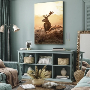 Impression sur toile - Image sur toile - Cerf dans les rayons du soleil levant - 50x70cm - Seigneur du domaine - Décoration murale moderne pour le salon et la chambre ARTTOR