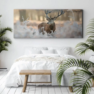Impression sur toile - Image sur toile - Un cerf dans une clairière givrée dans une forêt hivernale aux couleurs subtiles - 80x120cm - Une matinée animée - Décoration murale moderne pour le salon et la chambre ARTTOR