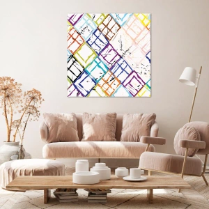 Impression sur toile - Image sur toile - Abstraction colorée avec des formes géométriques sur fond blanc - 50x70cm - Cellules à louer - Décoration murale moderne pour le salon et la chambre ARTTOR