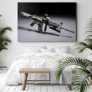 Impression sur toile - Image sur toile - Arme moderne de couleur camouflage sur fond sombre - 50x70cm - Toujours menaçant - Décoration murale moderne pour le salon et la chambre ARTTOR