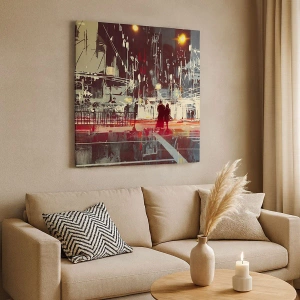 Impression sur toile - Image sur toile - Ville la nuit avec des néons et des silhouettes de personnes dans la rue - 70x100cm - Une grande traversée de ville - Décoration murale moderne pour le salon et la chambre ARTTOR