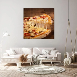 Impression sur toile - Image sur toile - Pizza au fromage filandreux - 50x70cm - Un chef-d'œuvre de l'art italien - Décoration murale moderne pour le salon et la chambre ARTTOR